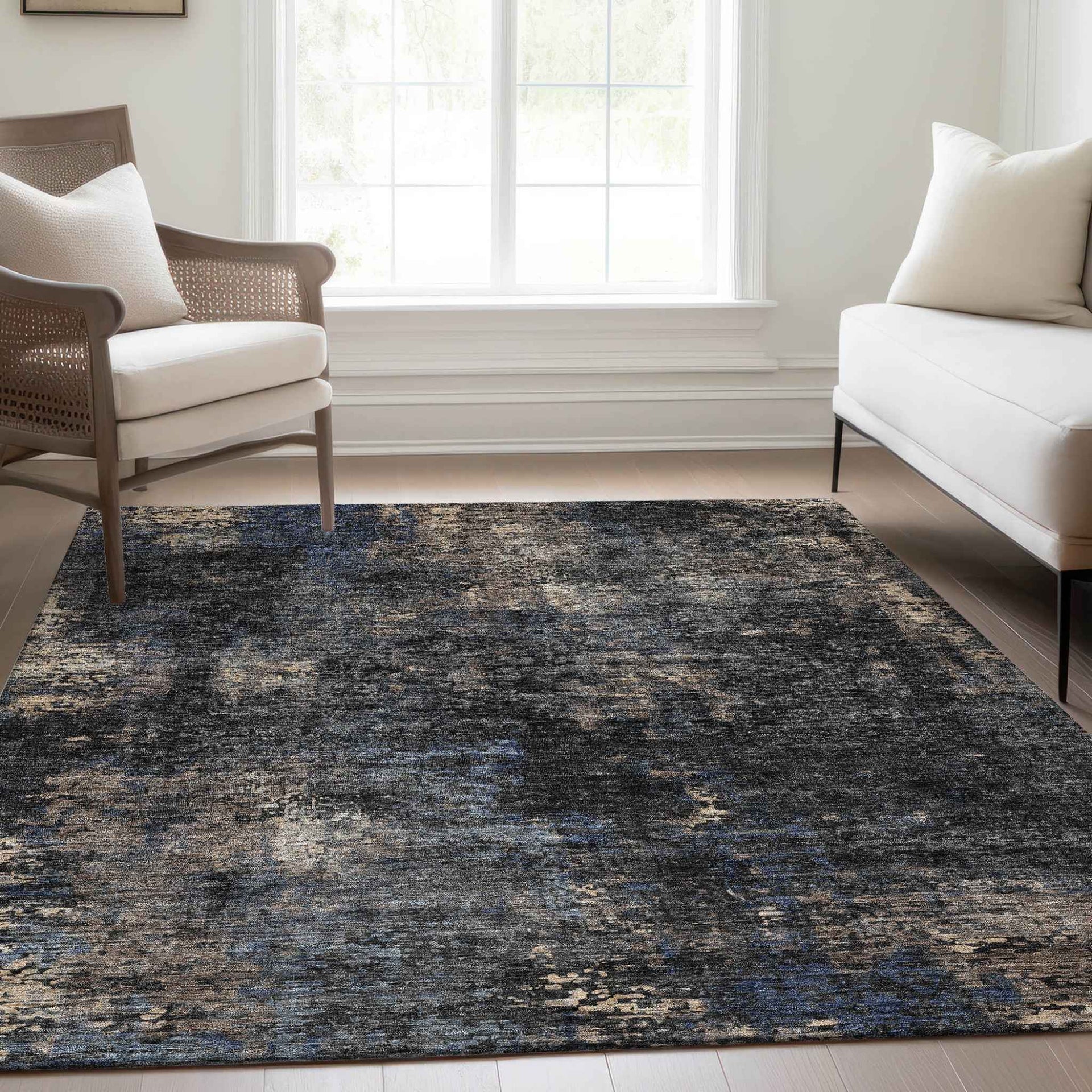 3' X 5' Charcoal Gray And Silver Abstract Washable Indoor Outdoor Area Rug