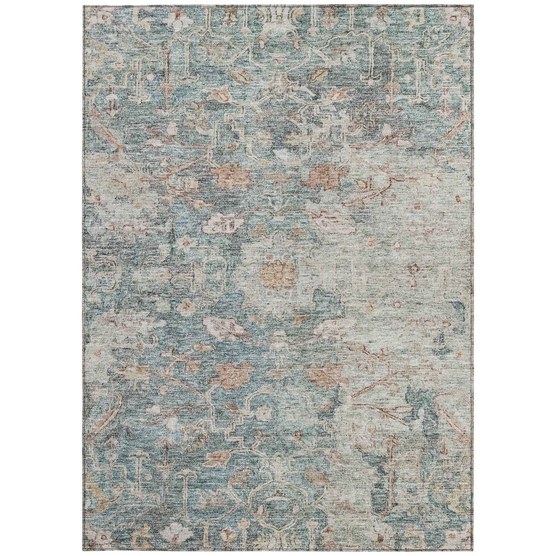 3' X 5' Green Blue And Gray Oriental Washable Indoor Outdoor Area Rug