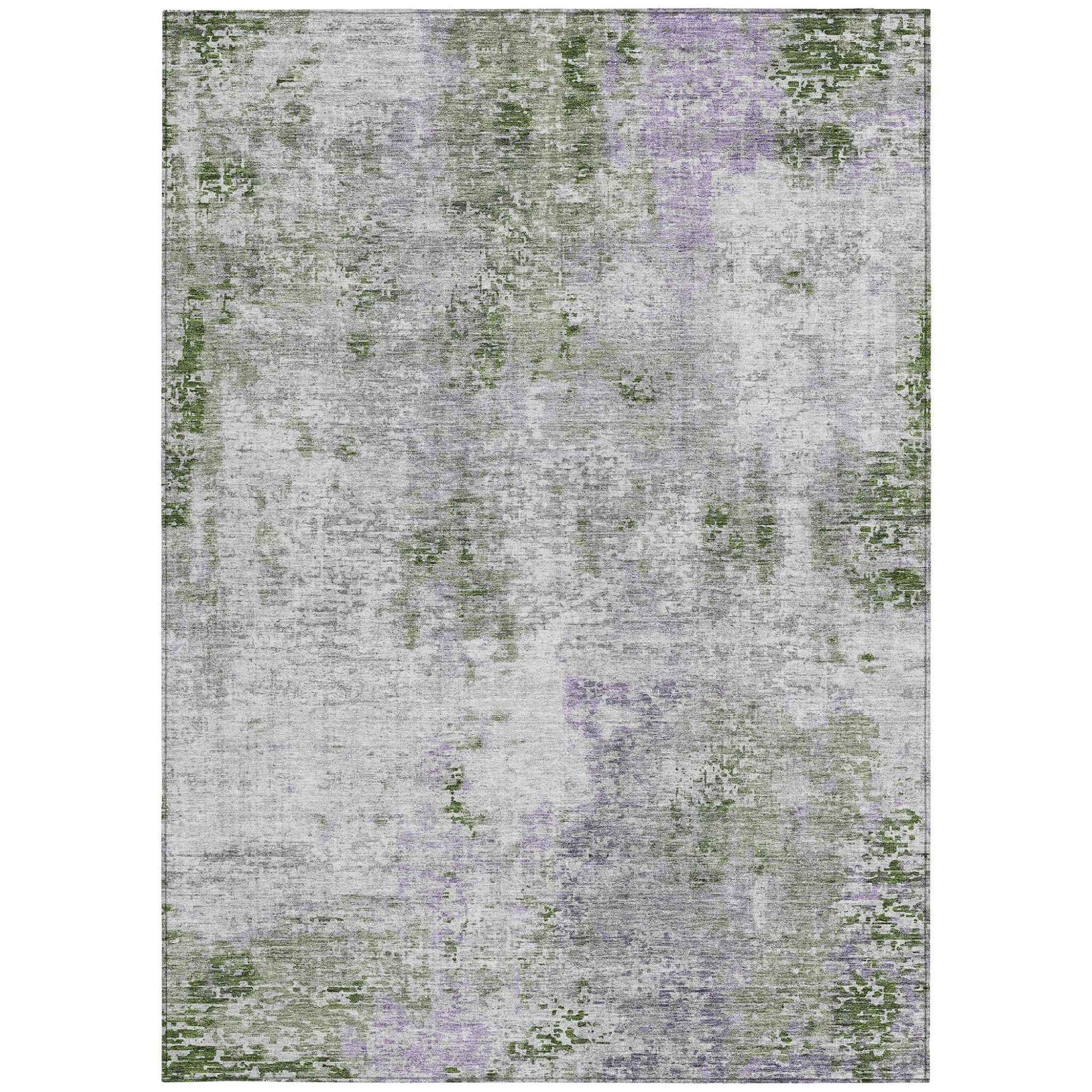 3' X 5' Olive Green And Gray Abstract Washable Indoor Outdoor Area Rug