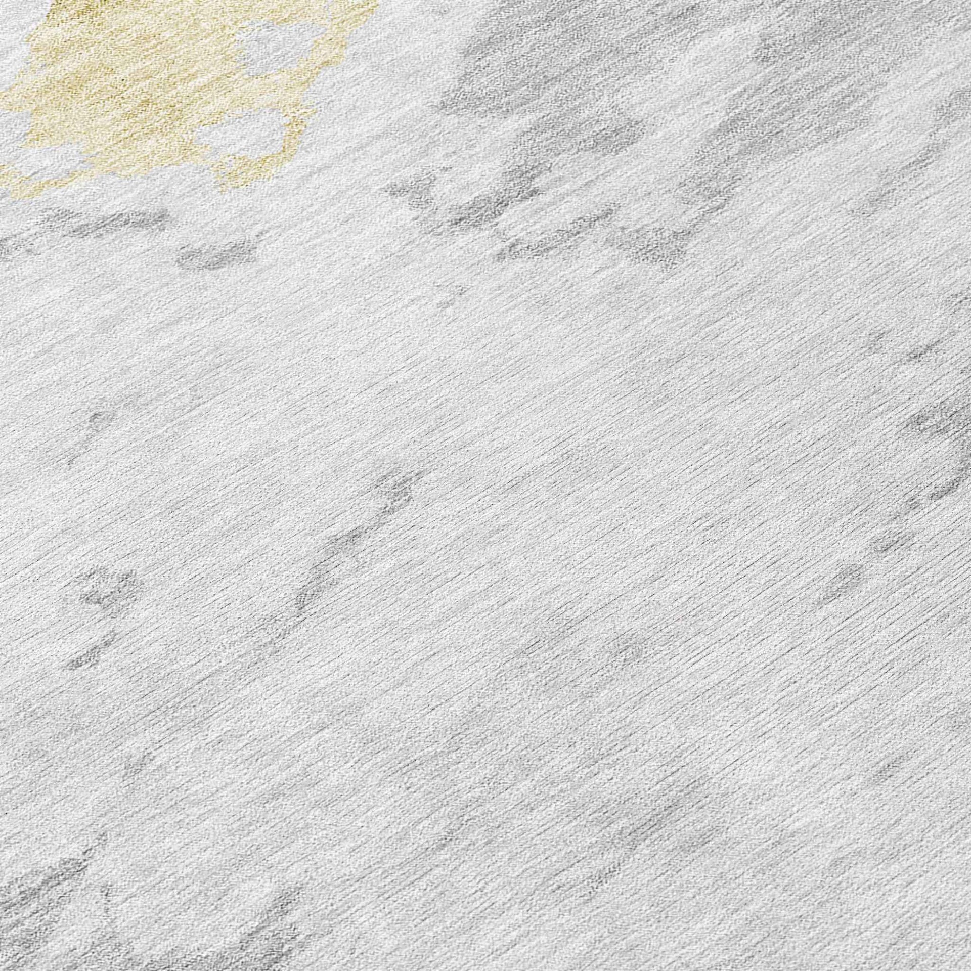 8' Silver Gray And Ivory Round Abstract Washable Indoor Outdoor Area Rug