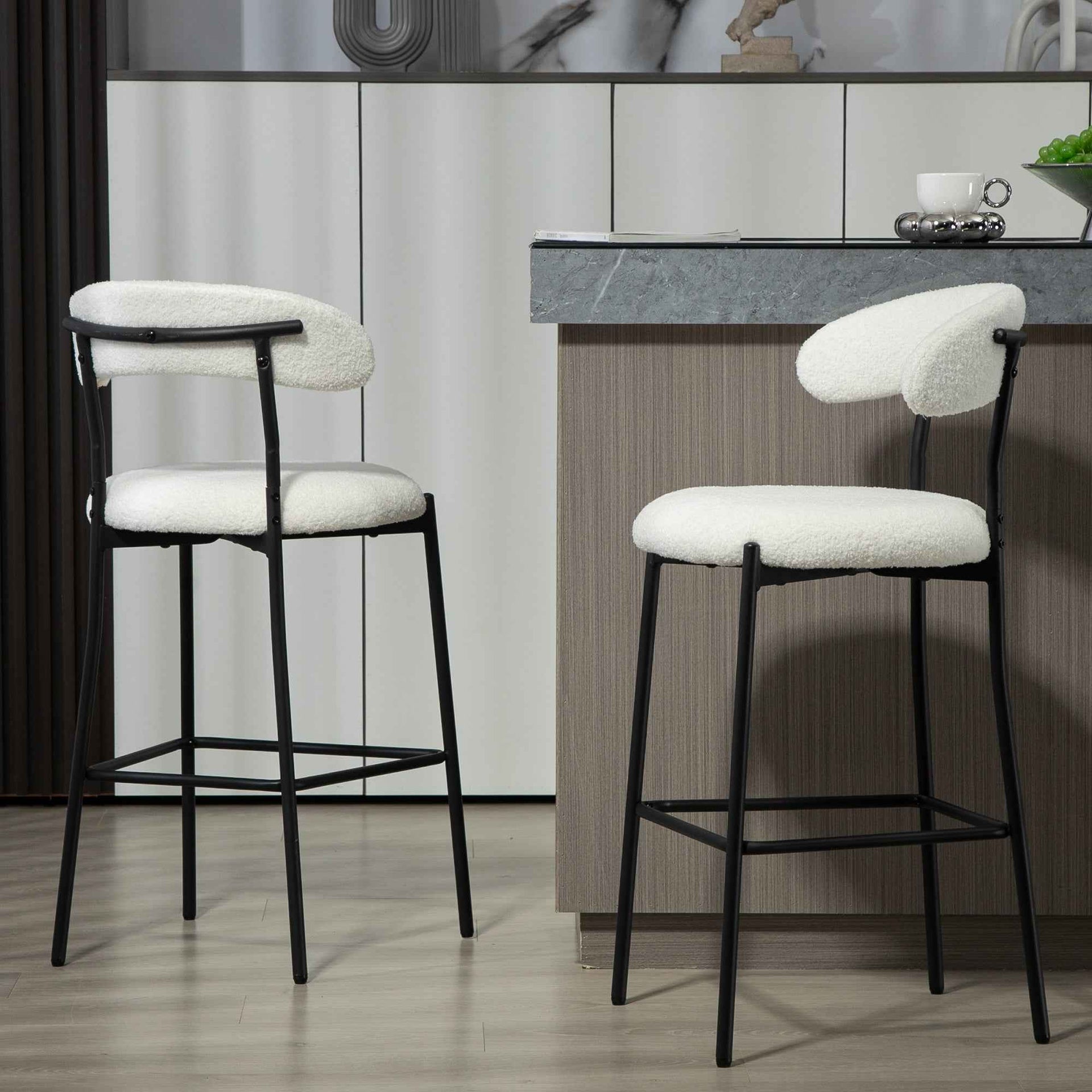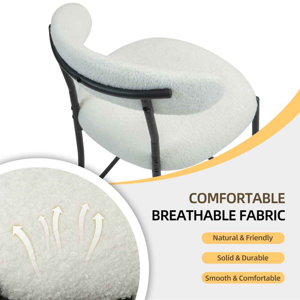 Upgrade your kitchen island or dining space with our 26" Counter Height Bar Stools – the perfect blend of comfort, durability, and modern style. Featuring a plush teddy fabric cover in elegant Snow White, these stools bring the cozy feel of your favorite sofa or accent chair into your kitchen. The black powder-coated base with built-in footrest offers stability, while the sleek design complements everything from dining chairs and coffee tables to modern sectional couches and living room furniture.
